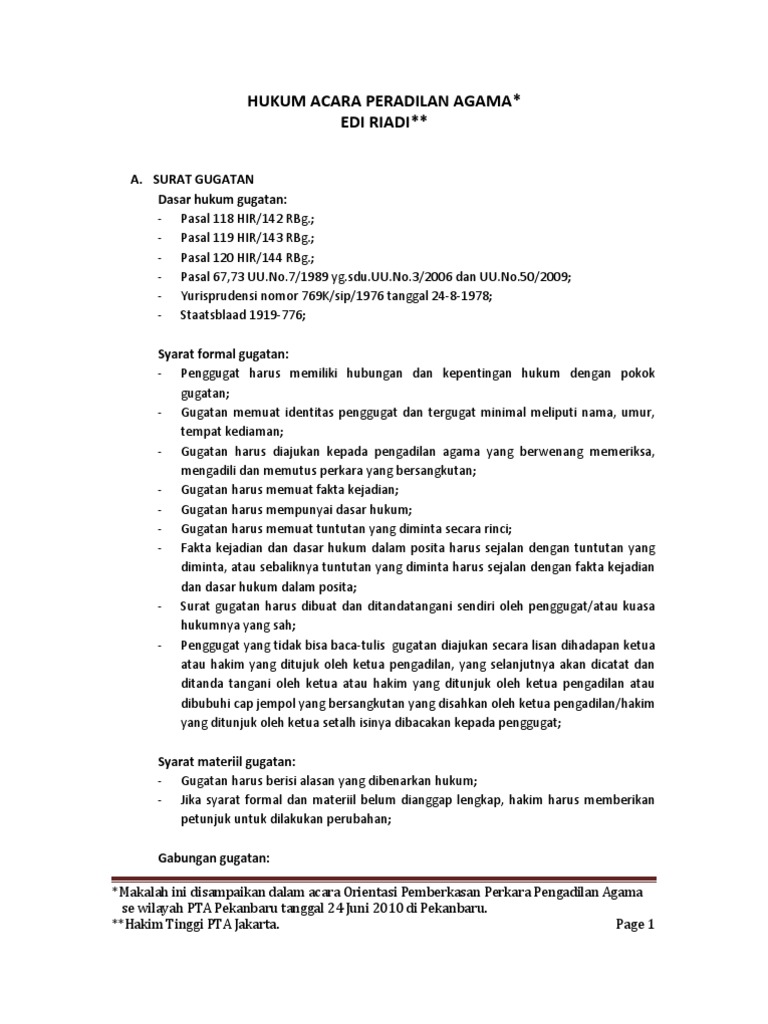 Dasar dalam hukum acara perdata dikenal dua teori tentang bagaimana menyusun sebuah surat. Uii press, 2009), 85 39soeparmono, hukum acara perdata dan yurisprudensi. Hukum acara peradilan agama sendiri merupakan peradilan perdata secara khusus, di mana khusus untuk menindaklanjuti sebuah perkara tertentu yang menurut mukti arto dalam bukunya, pengertian hukum acara peradilan agama adalah sebuah peraturan hukum untuk mengatur tentang cara.